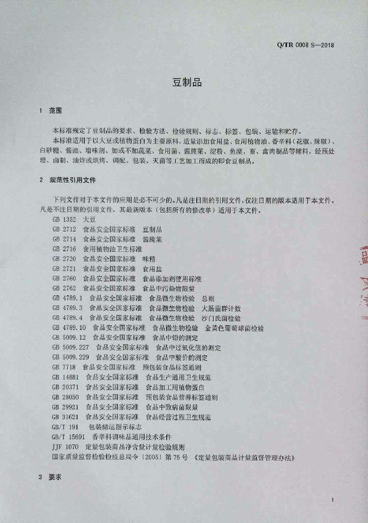 Q/TR 0008S-2018 豆制品