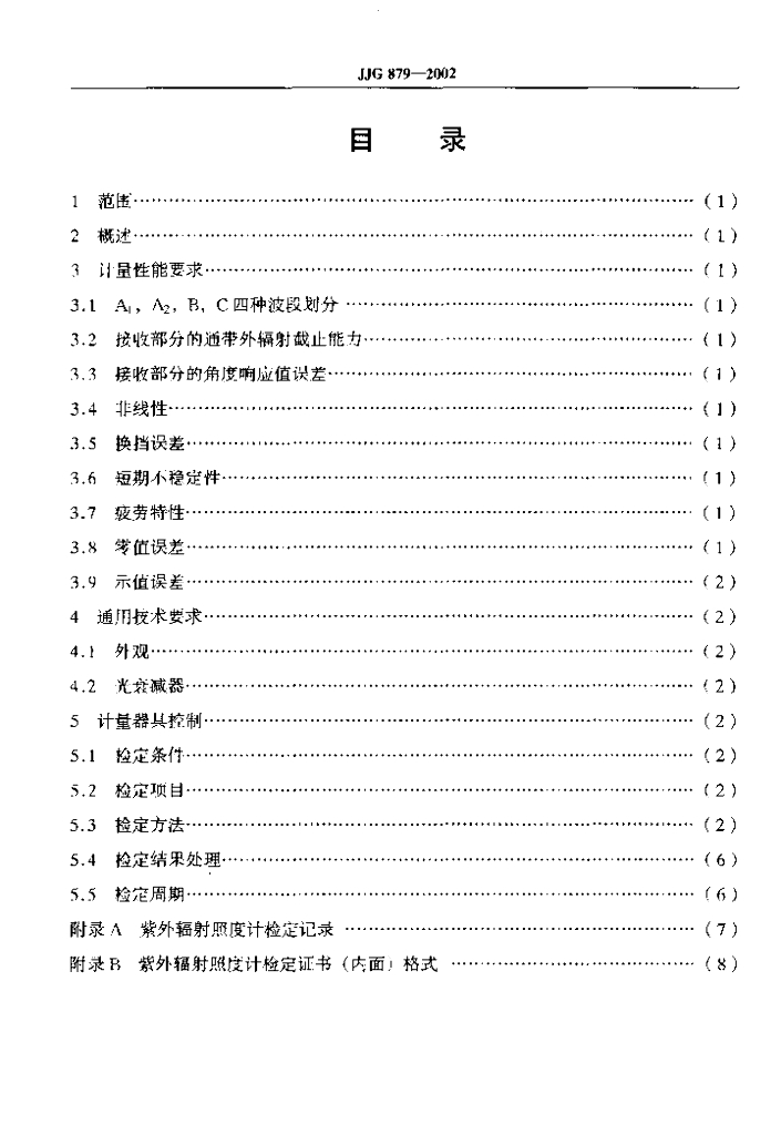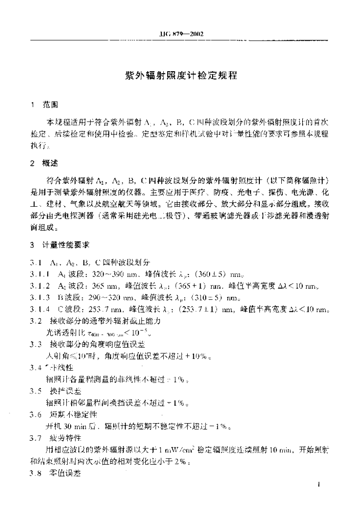 JJG 879-2002 紫外辐射照度计