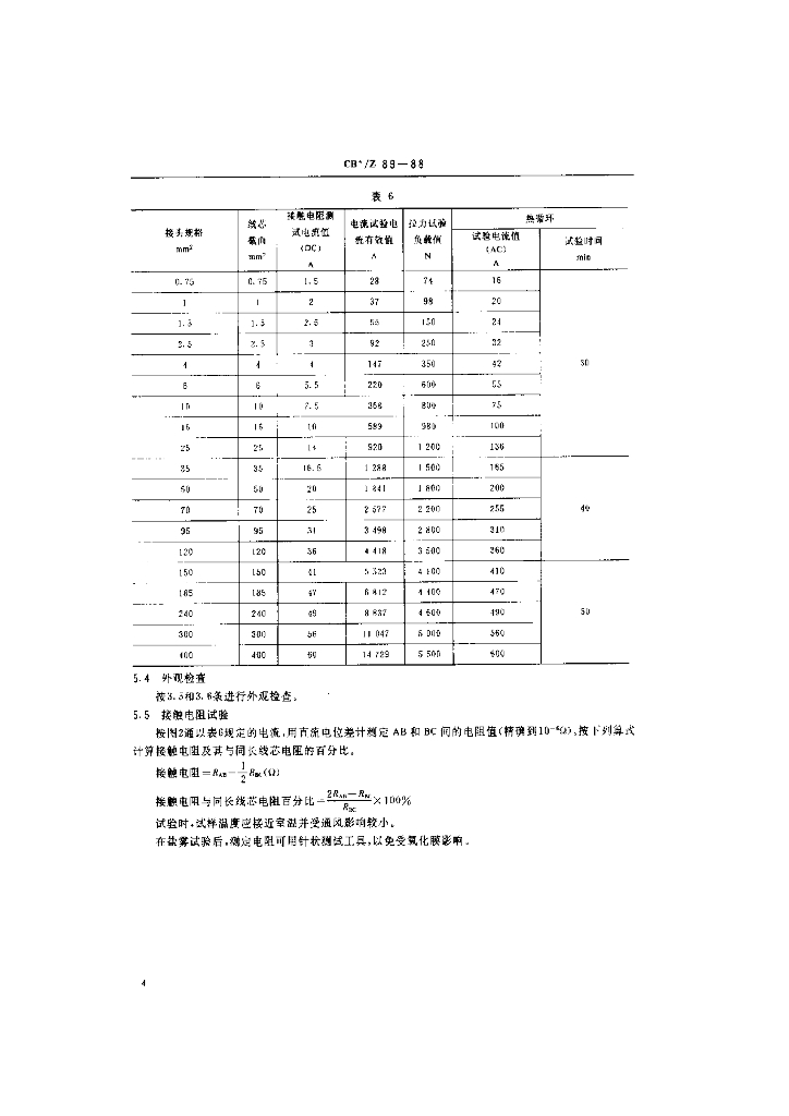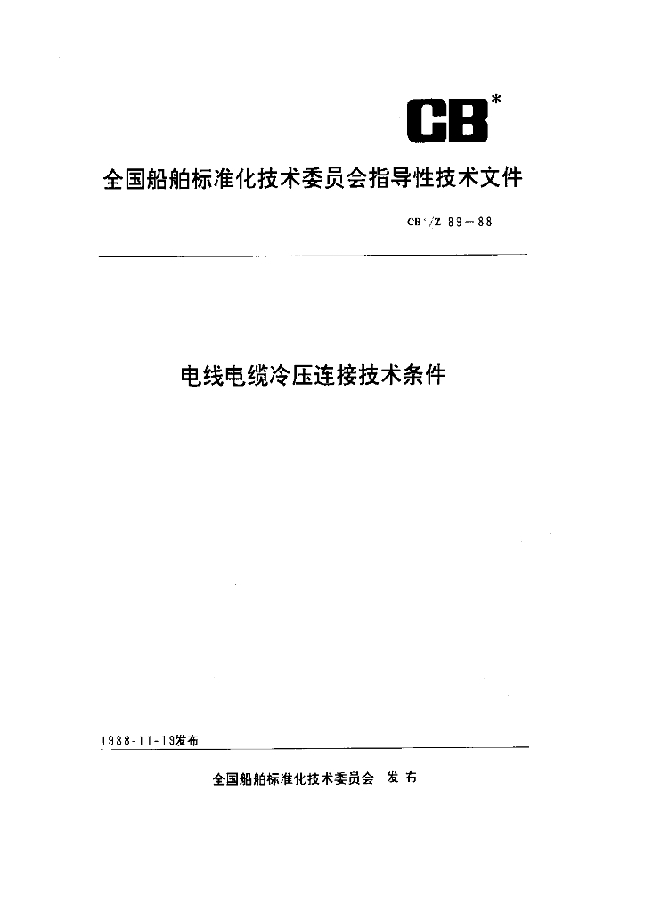 CB/Z 89-1988 电线电缆冷压连接技术条件