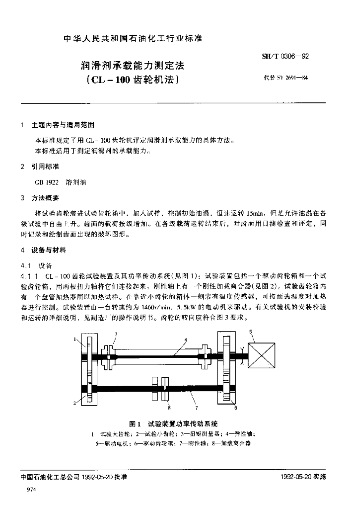 SH/T 0306-1992 润滑剂承载能力测定法(CL-100齿轮机法)