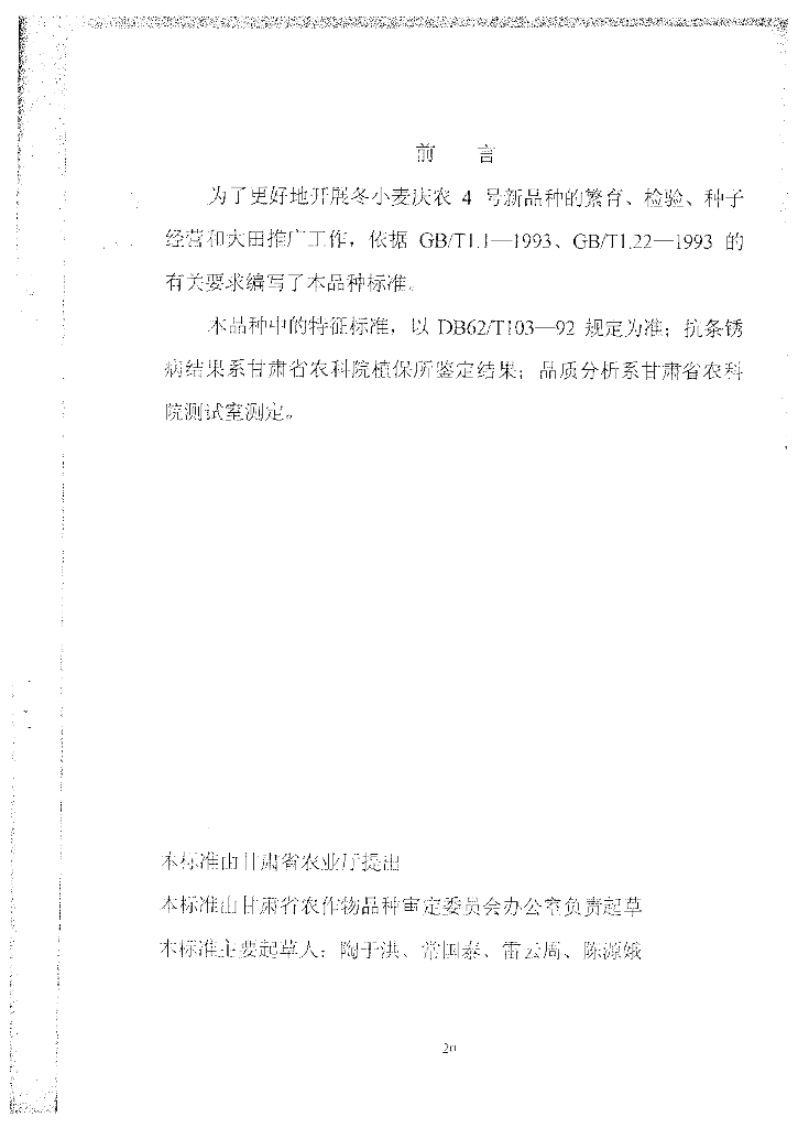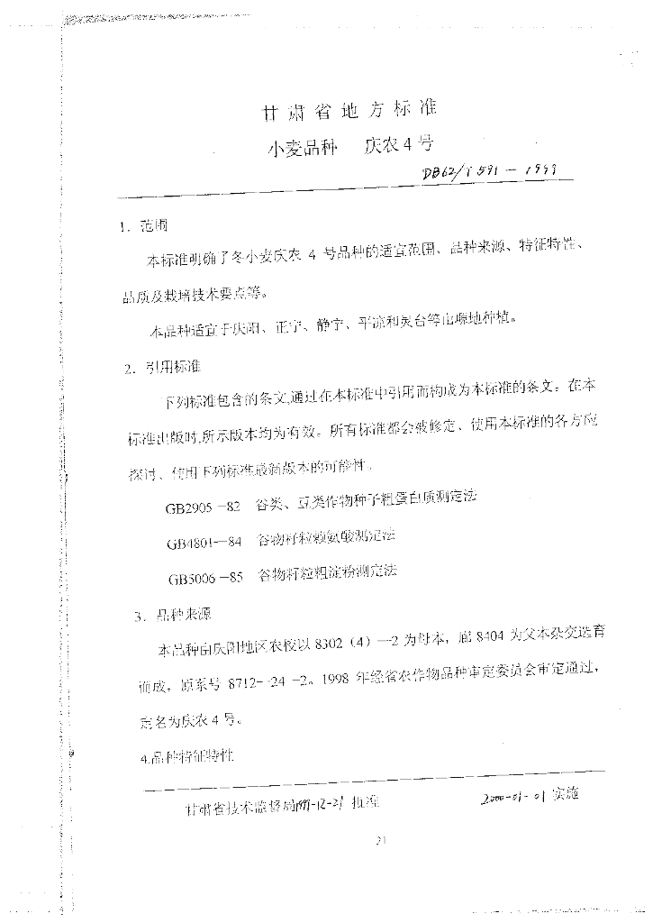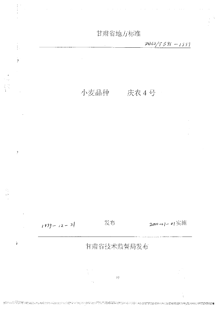 DB62/T 591-1999 小麦品种庆农4号