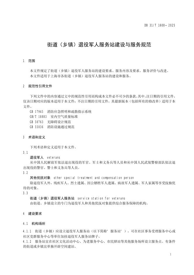 DB31/T 1608-2025 街道(乡镇)退役军人服务站建设与服务规范