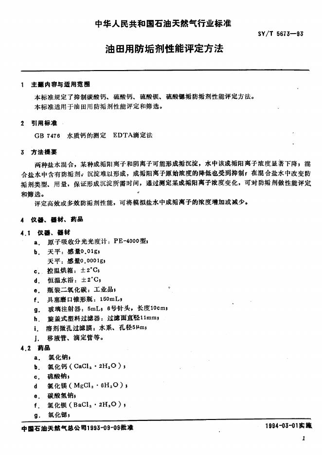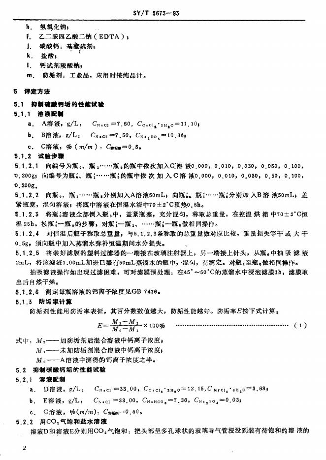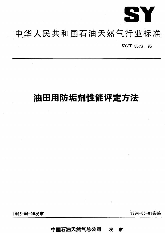 SY/T 5673-1993 油田用防垢剂性能评定方法