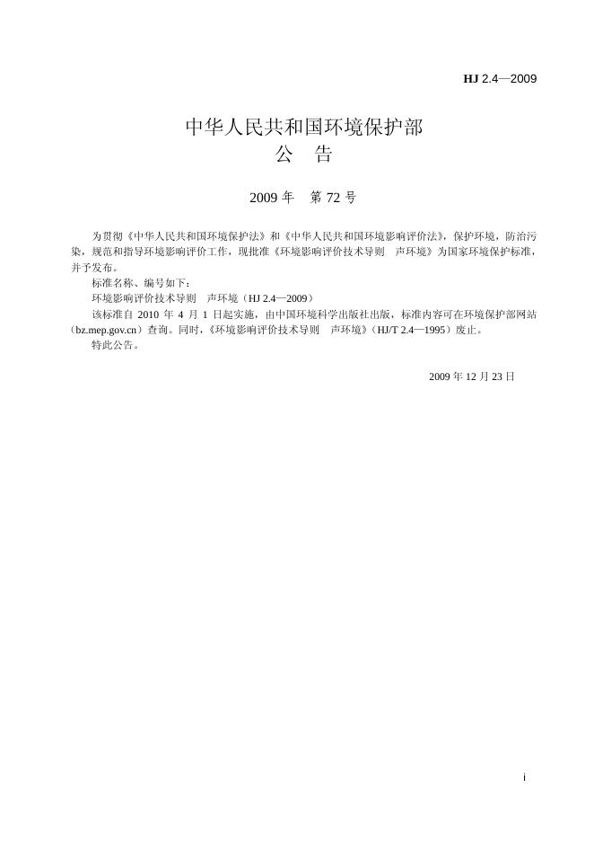 HJ 2.4-2009 环境影响评价技术导则 声环境