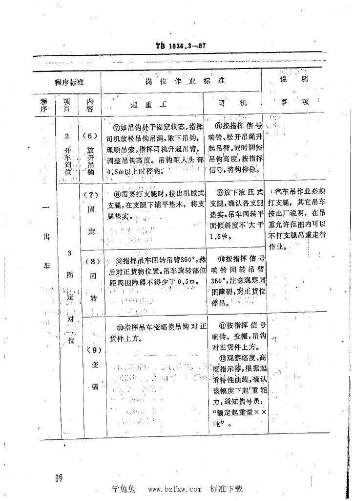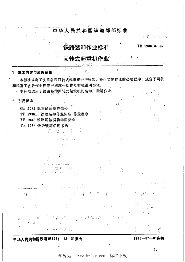 TB/T 1936.3-1987 铁路装卸作业标准 回转式起重机作业