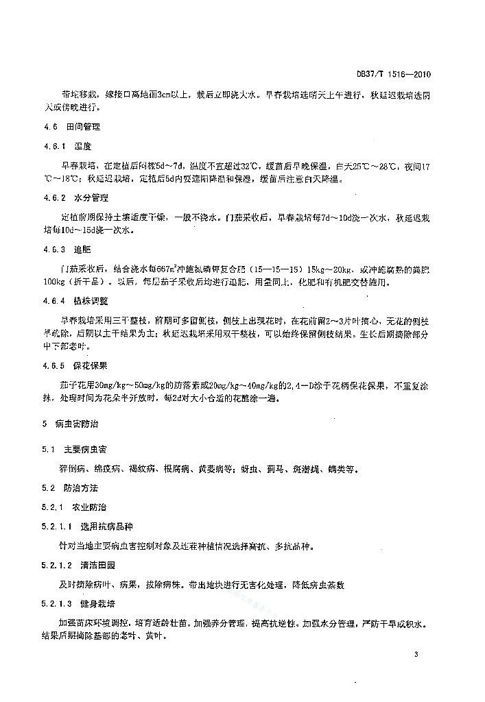 DB37/T 1516-2010 无公害食品 塑料大棚茄子生产技术规程