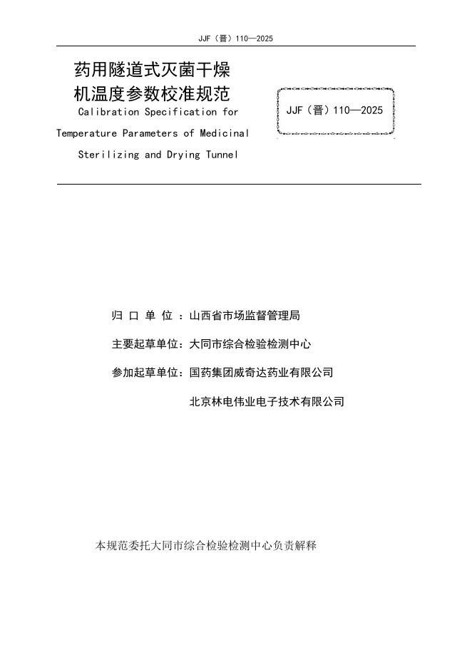 JJF(晋)110-2025 药用隧道式灭菌干燥机校准规范