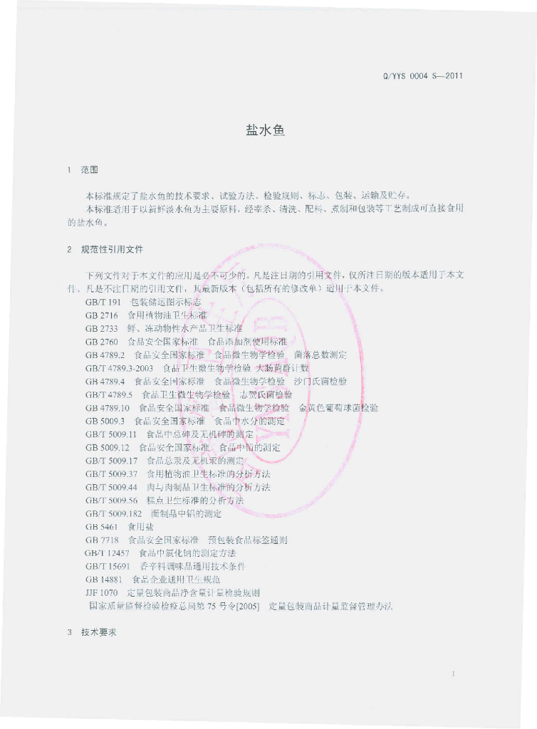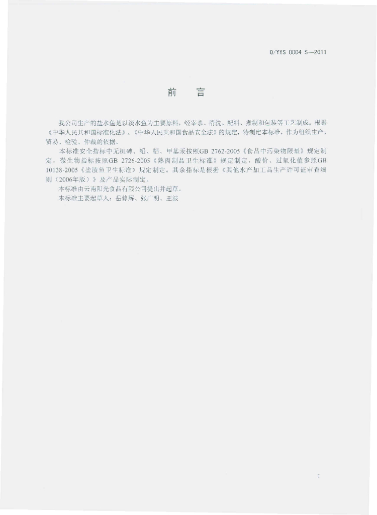 Q/YYS 0004S-2011 盐水鱼