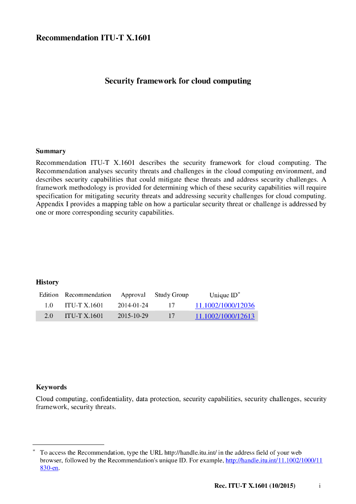 ITU-T X.1601-2015 云计算的安全框架