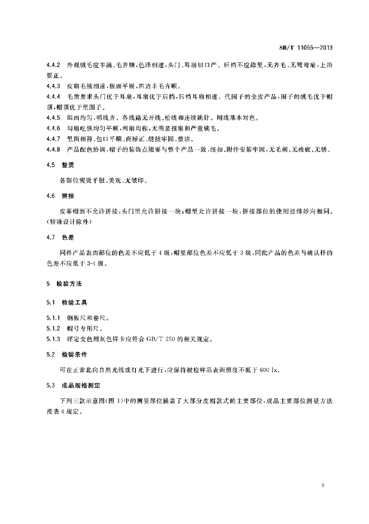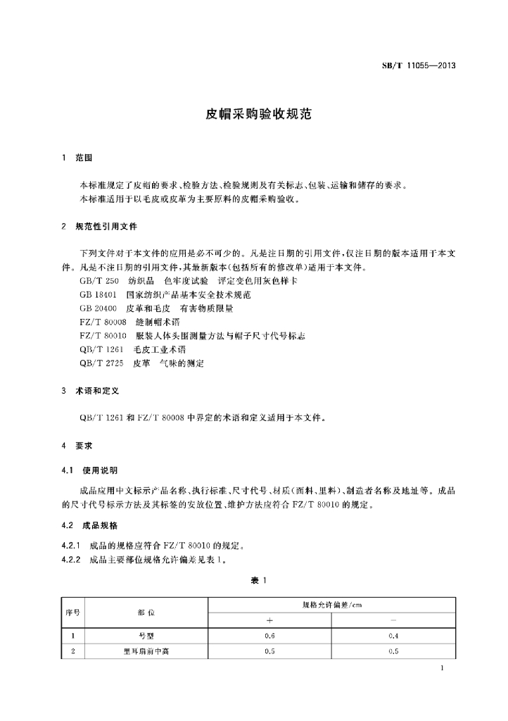 SB/T 11055-2013 皮帽采购验收规范