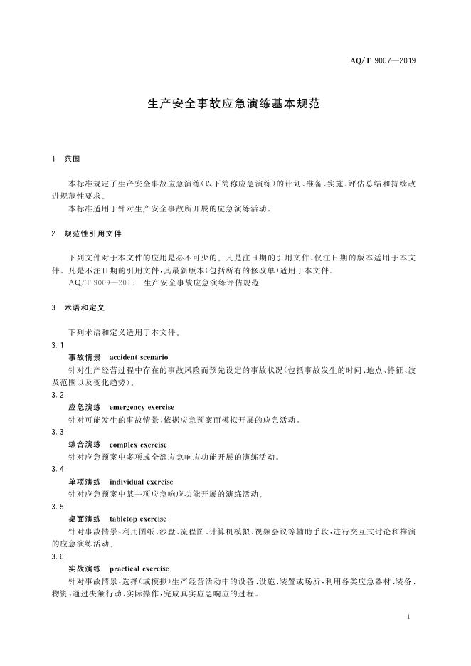 AQ/T 9007-2011 安全生产事故应急演练指南