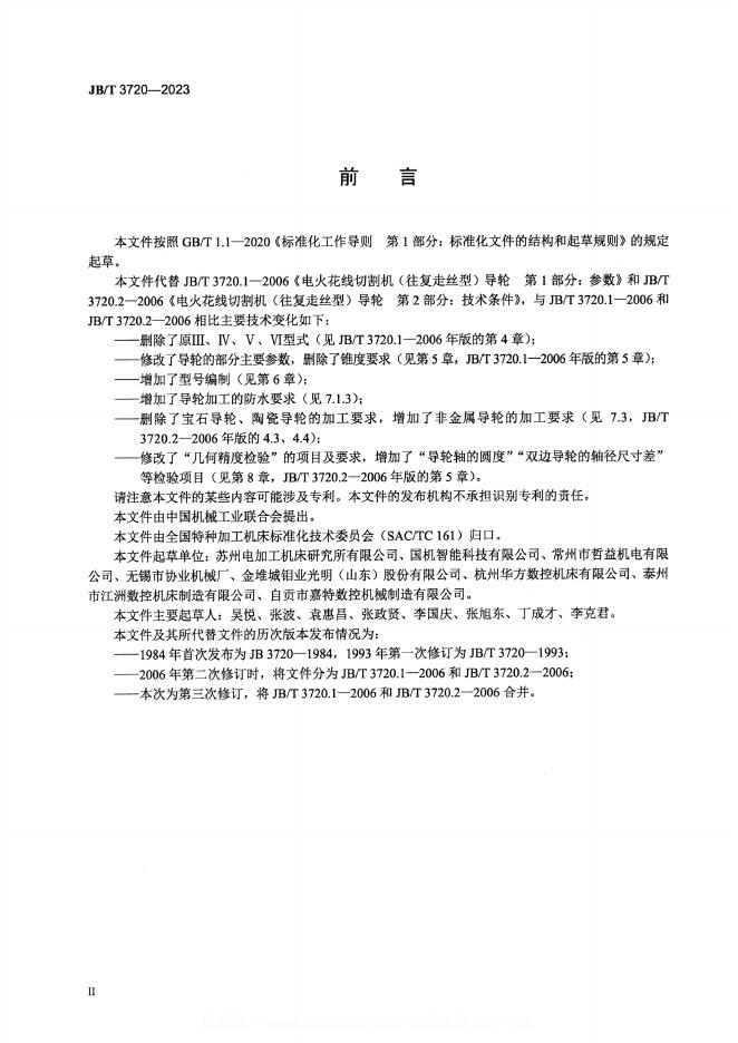 JB/T 3720-2023 往复走丝电火花线切割机床导轮 通用技术要求