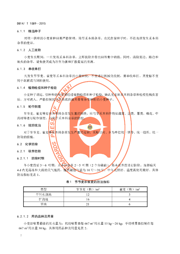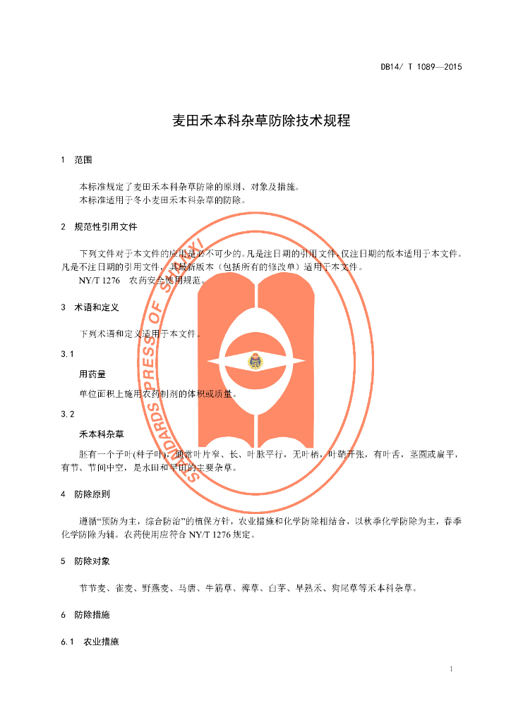 DB14/T 1089-2015 麦田禾本科杂草防除技术规程