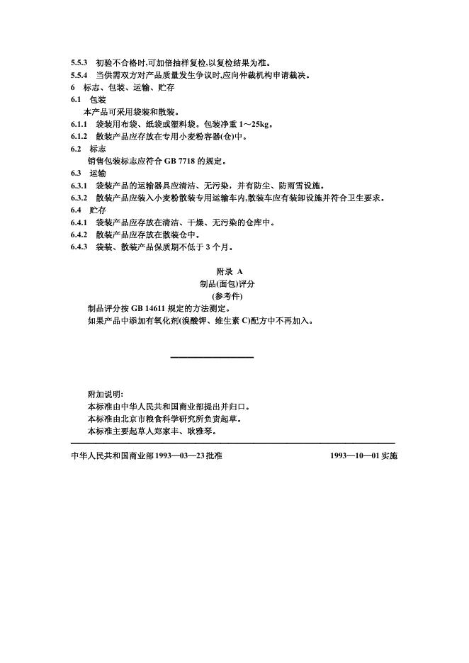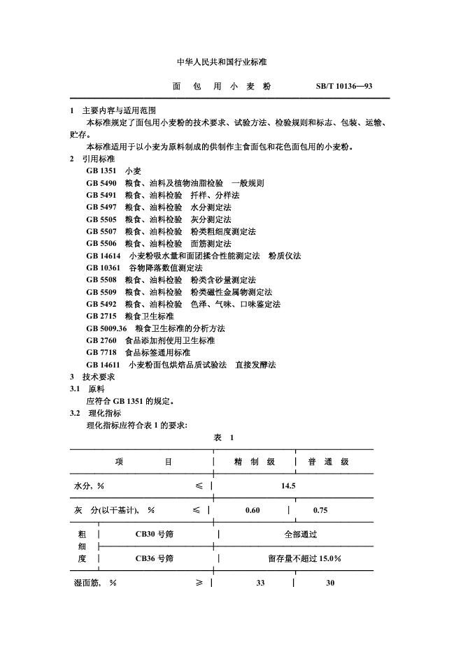 SB/T 10136-1993 面包用小麦粉