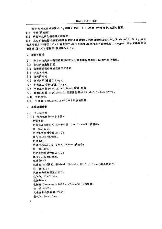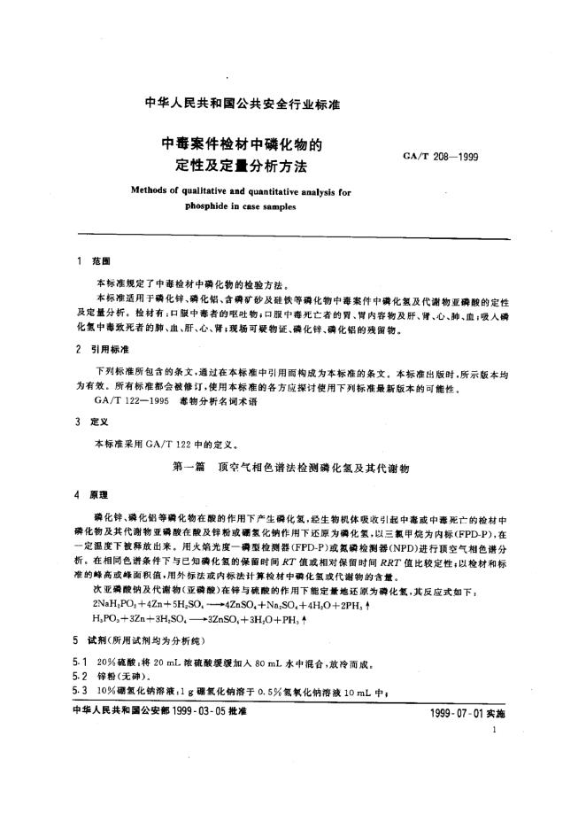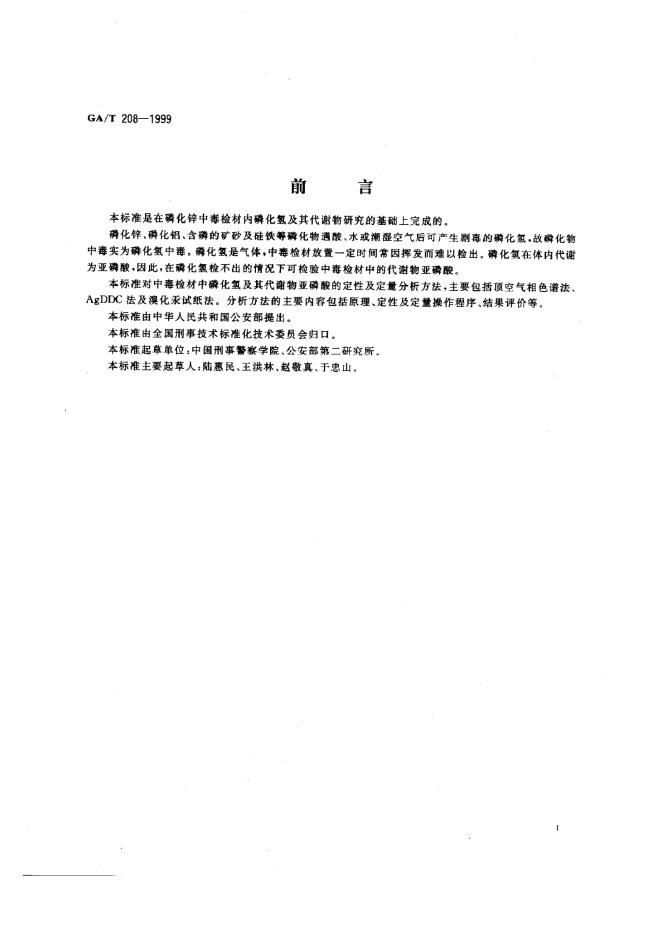 GA/T 208-1999 中毒案件检材中磷化物的定性定量分析方法
