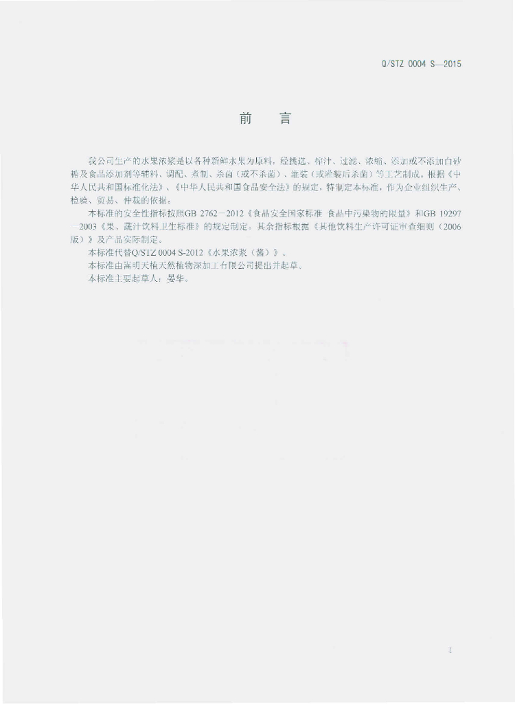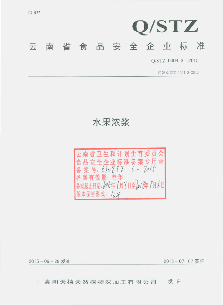 Q/STZ 0004S-2015 嵩明天植天然植物深加工有限公司 水果浓浆