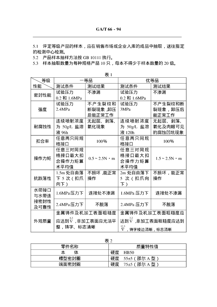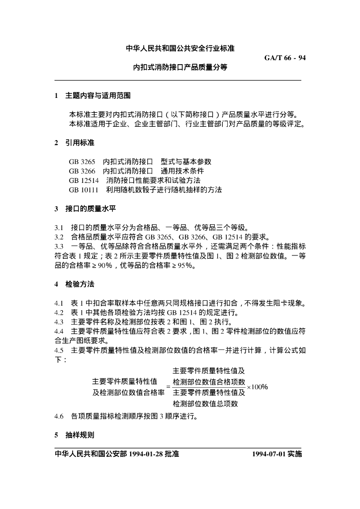 GA/T 66-1994 内扣式消防接口产品质量分等