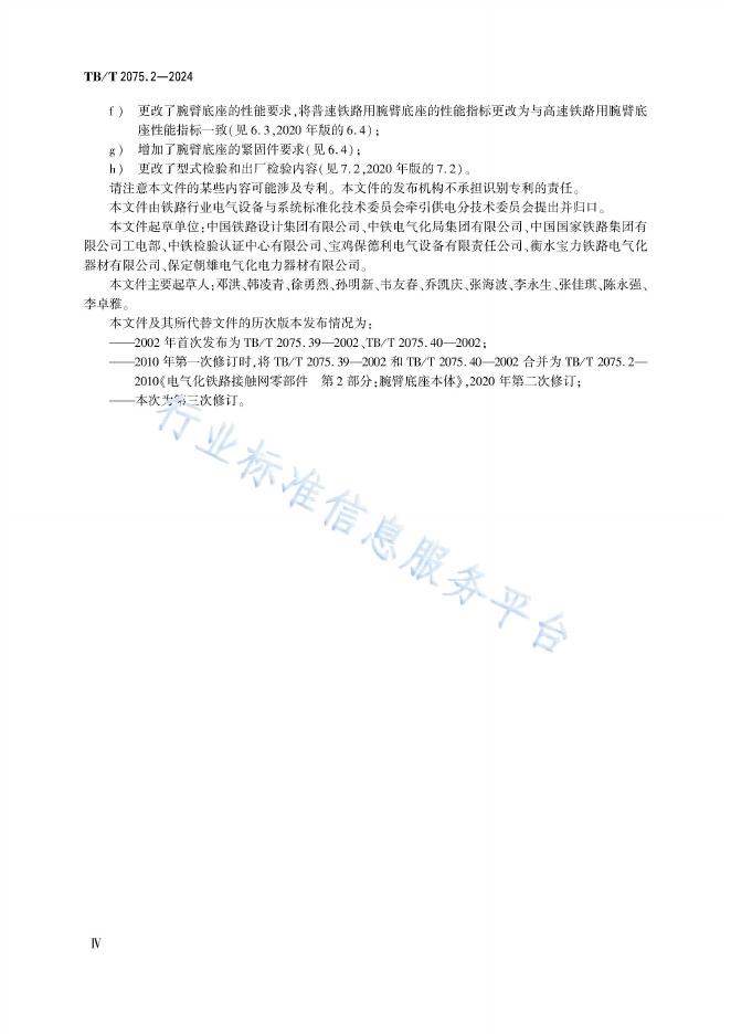 中国铁路设计集团有限公司、中铁电气化局集团有限公司、中国国家铁路集团有限公司工电部、(铁科院标准所)中铁检验认证中心有限公司、宝鸡保德利电气设备有限责任公司、衡水宝力铁路电气化器材有限公司、保定朝雄电气化电力器材有限公司