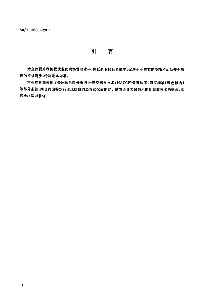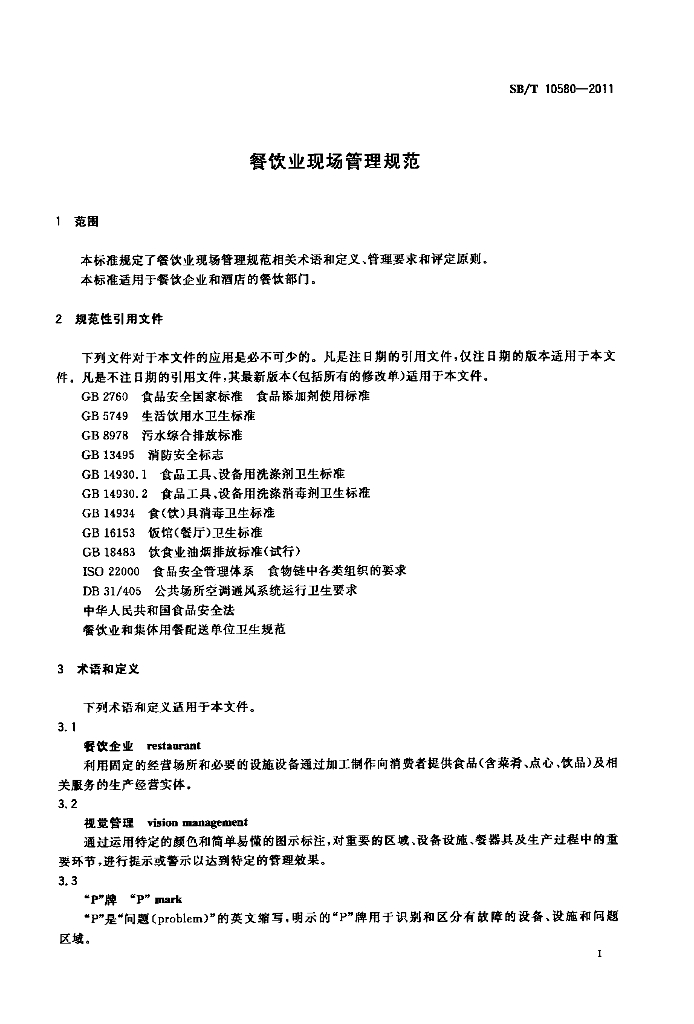 SB/T 10580-2011 餐饮业现场管理规范