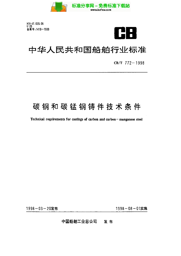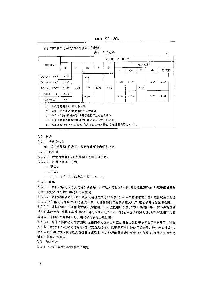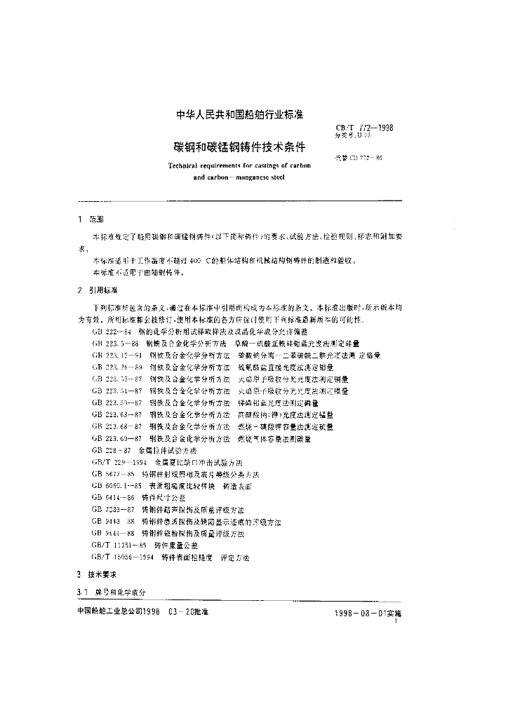 CB/T 772-1998 碳钢和碳锰钢铸件技术条件