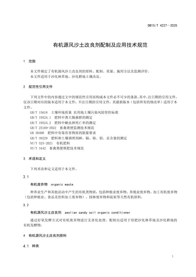 DB15/T 4227-2025 有机源风沙土改良剂配制及应用技术规范