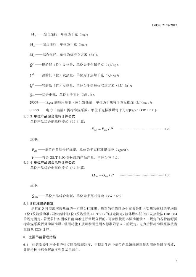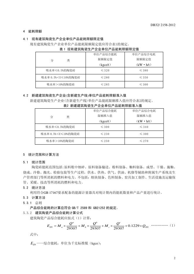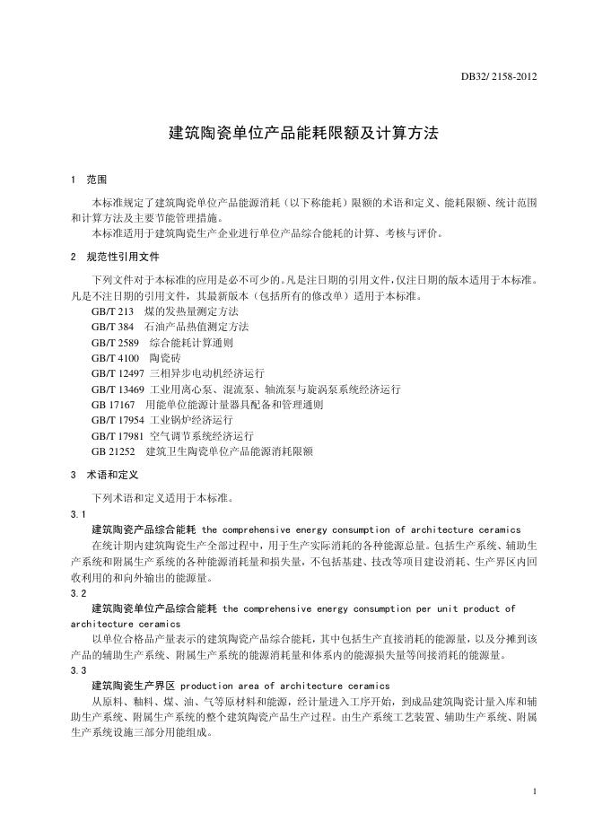 DB32/ 2158-2012 建筑陶瓷单位产品能耗限额及计算方法