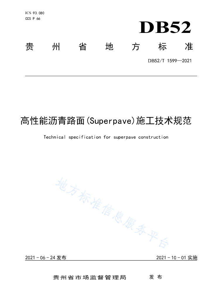 DB52/T 1599-2021 高性能沥青路面(Superpave)施工技术规范