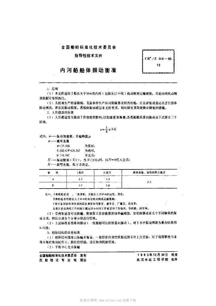 CB/Z 314-1980 内河船船体振动衡准