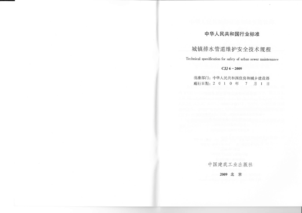 CJJ 6-2009 城镇排水管道维护安全技术规程(附条文说明)
