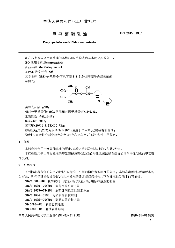HG 2845-1997 甲氰菊酯乳油