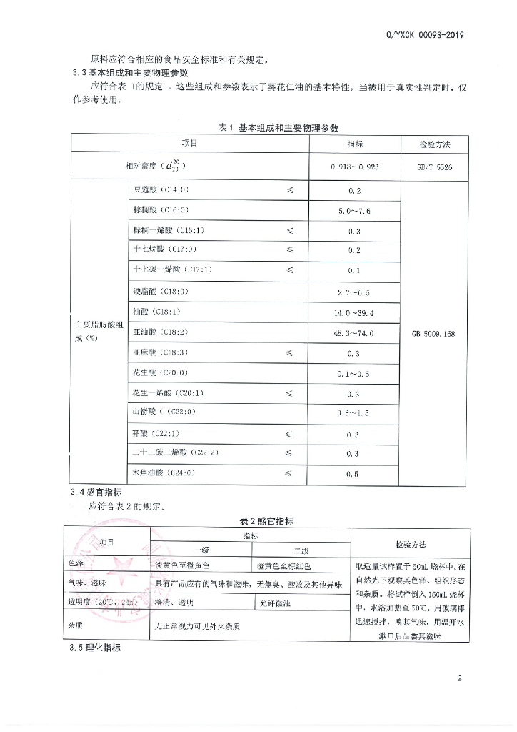 Q/YXCK 0009S-2019 葵花仁油