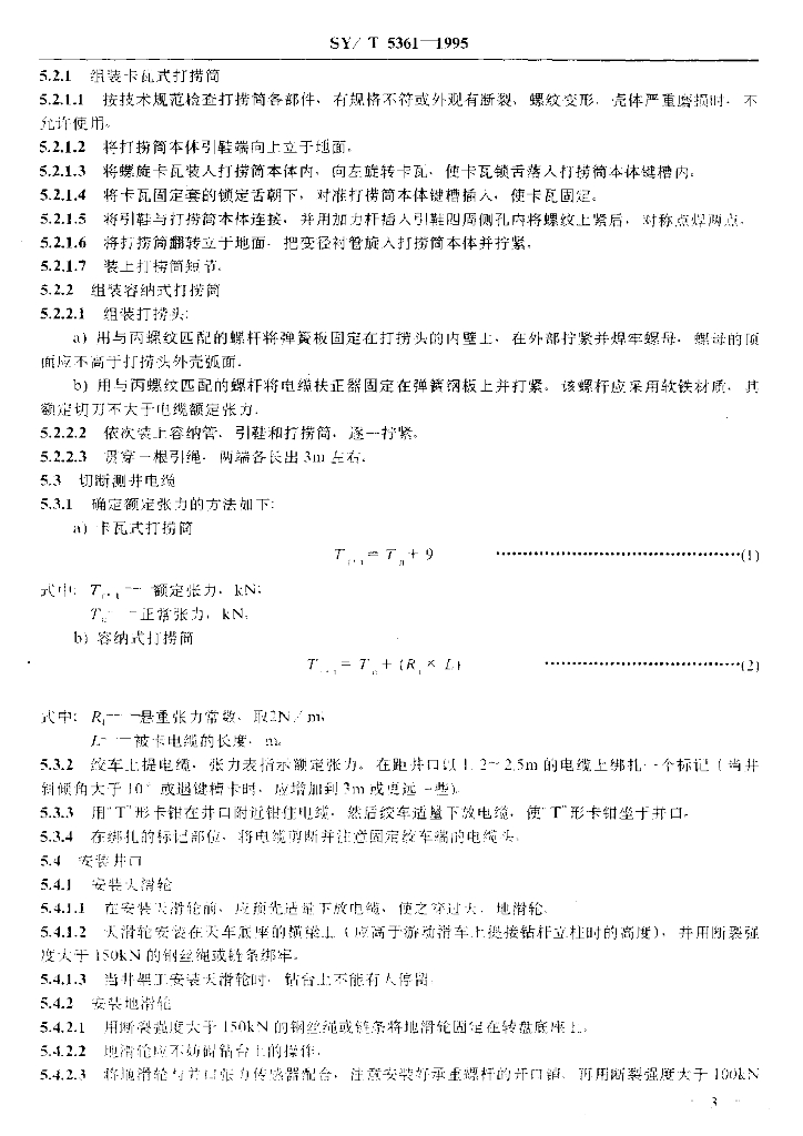 SY/T 5361-1995 测井电缆穿心打捞操作规程