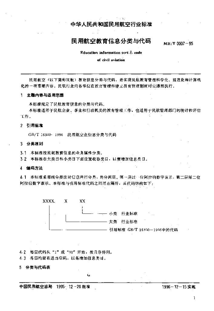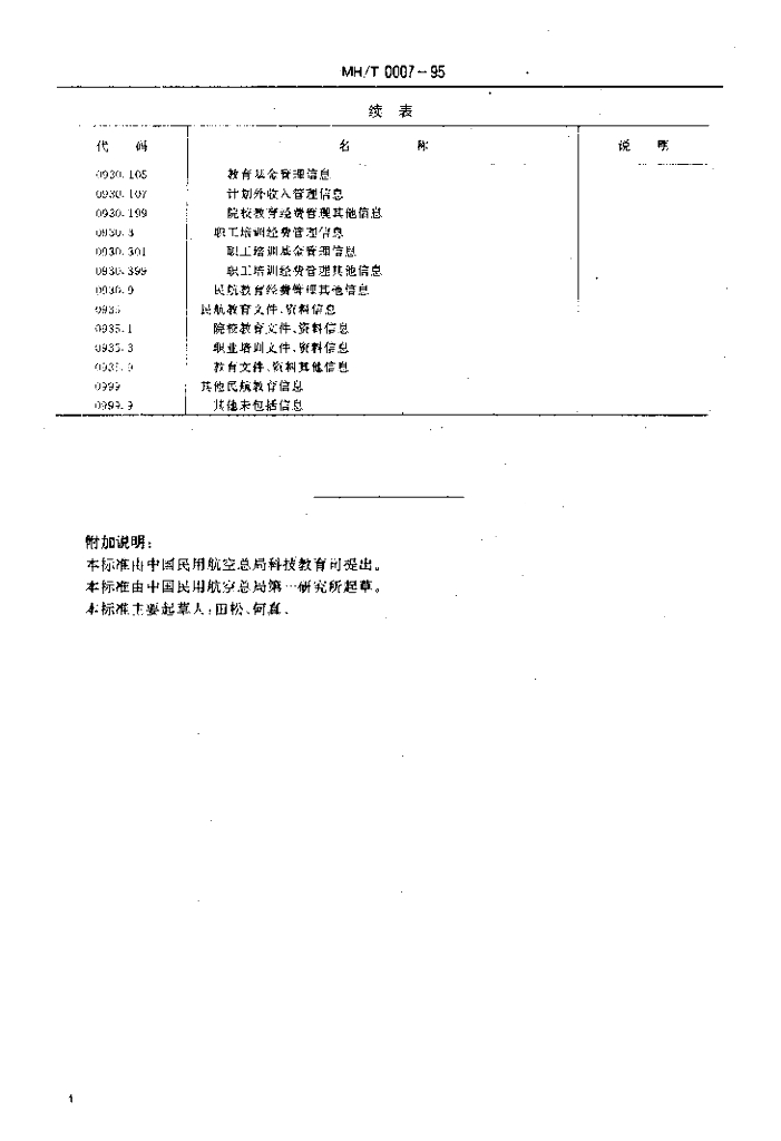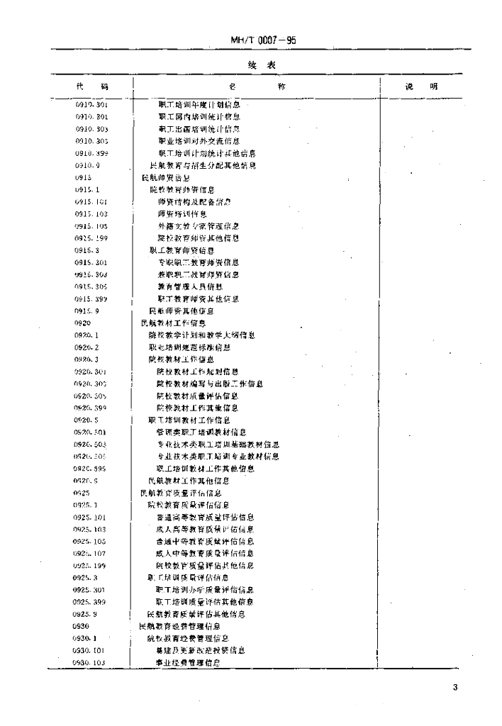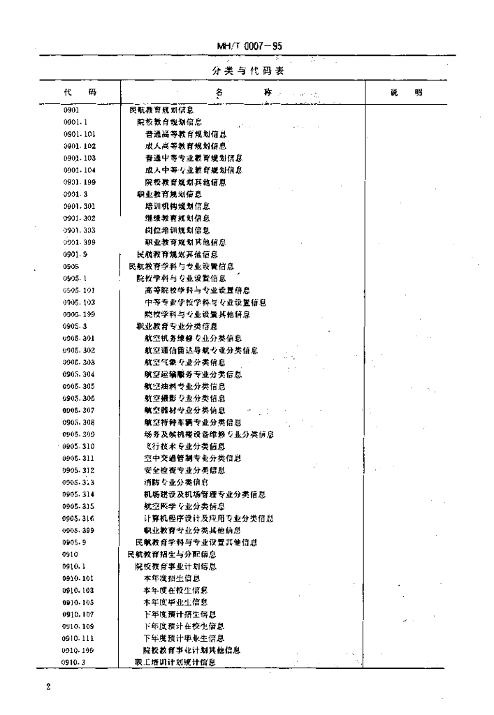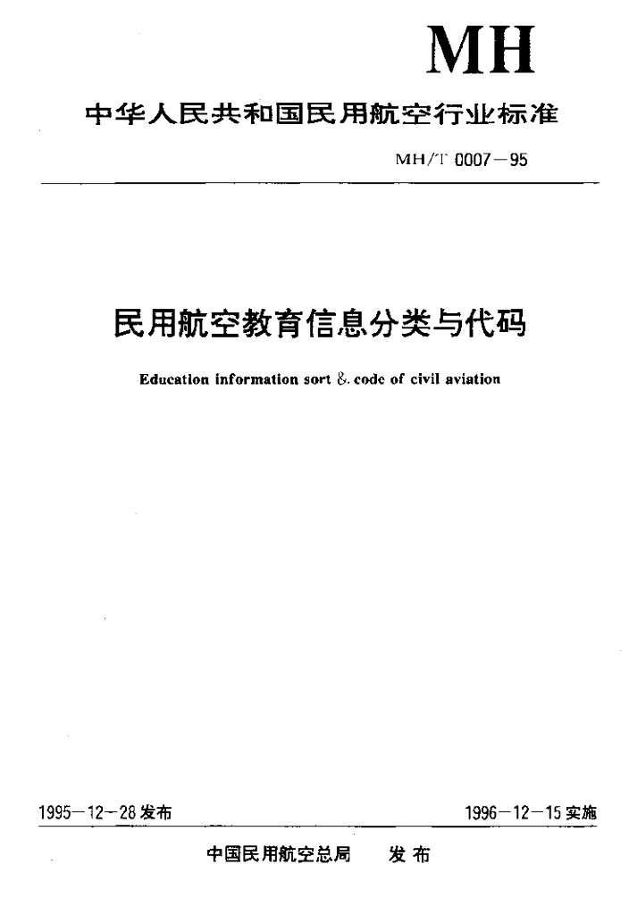 MH/T 0007-1995 民用航空教育信息分类与代码