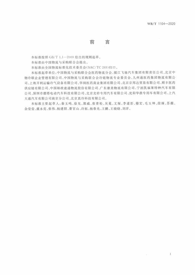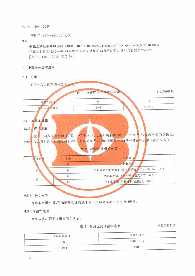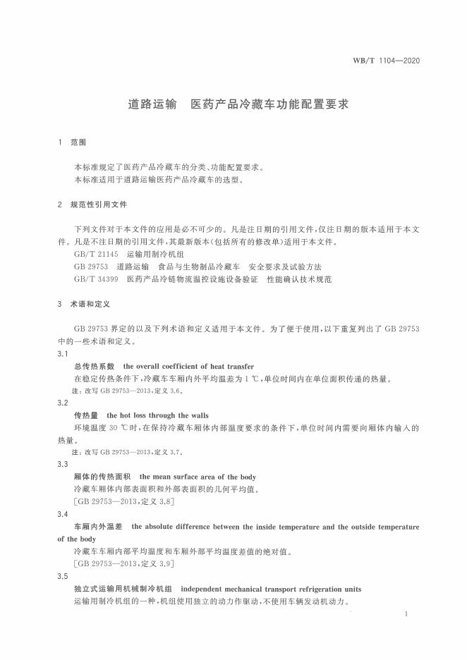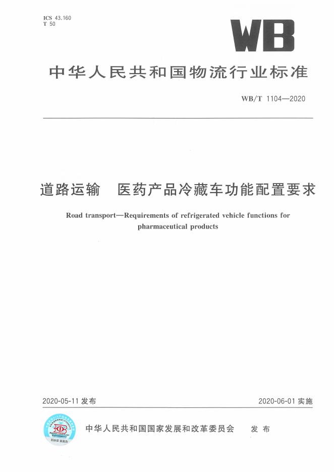 WB/T 1104-2020 道路运输医药产品冷藏车功能配置要求