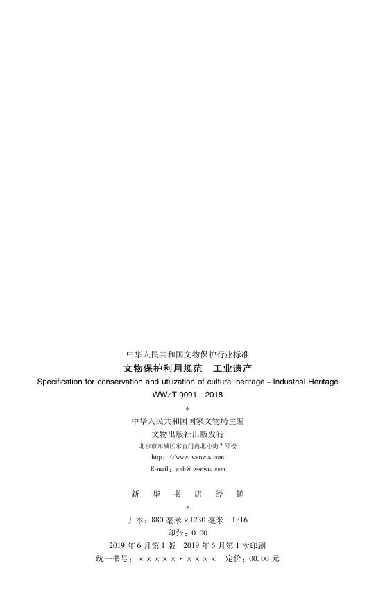 WW/T 0091-2018 文物保护利用规范 工业遗产