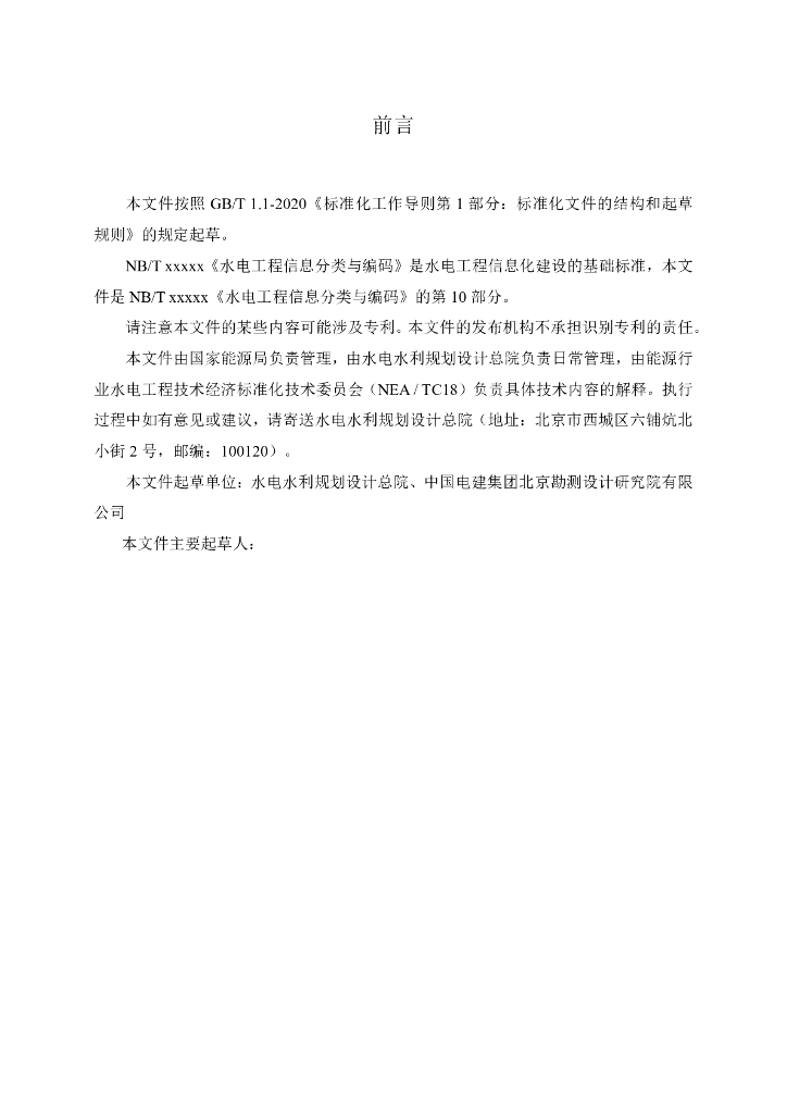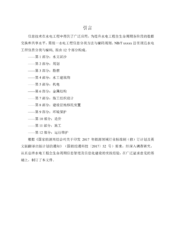 NB/T xxxxx-20xx 水电工程信息分类与编码 第10部分:造价(征求意见稿)