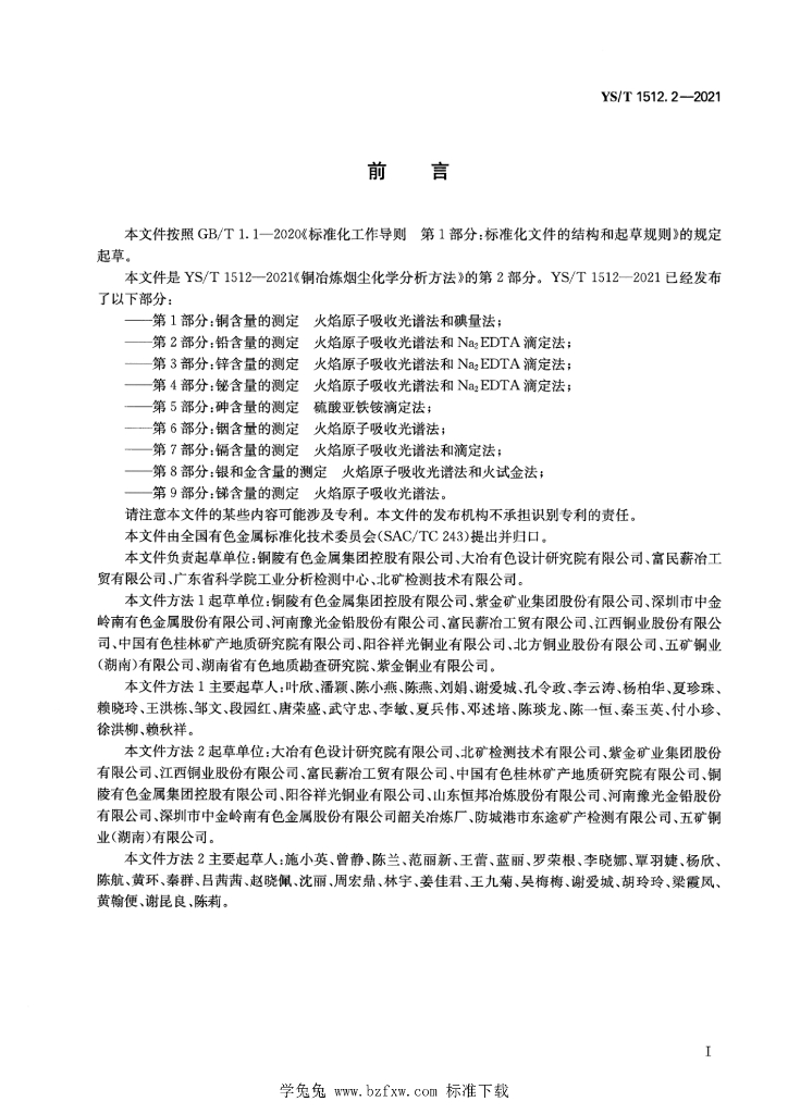 铜陵有色金属集团控股有限公司、大冶有色设计研究院有限公司、富民薪冶工贸有限公司、广东省科学院工业分析检测中心、北矿检测技术有限公司、铜陵有色金属集团控股有限公司、紫金矿业集团股份有限公司、深圳市中金岭南有色金属股份有限公司、河南豫光金铅股份有限公司、富民薪冶工贸有限公司、江西铜业股份有限公司、中国有色桂林矿产地质研究院有限公司、阳谷祥光铜业有限公司、北方铜业股份有限公司、五矿铜业(湖南)有限公司、湖南省有色地质勘查研究院、紫金铜业有限公司、大冶有色设计研究院有限公司、北矿检测技术有限公司、紫金矿业集团股份