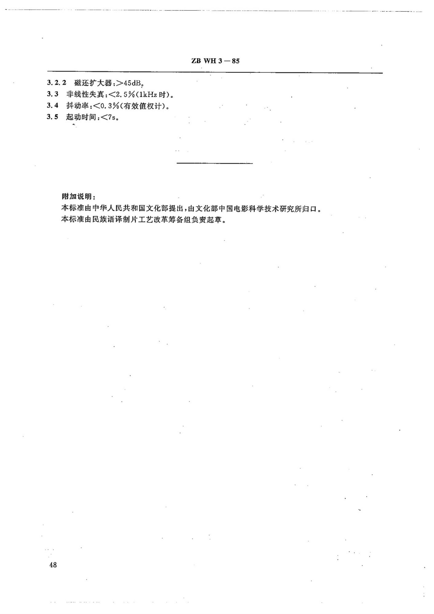 ZB WH 3-85 35mm电影放映机片边磁性还音装置的技术要求