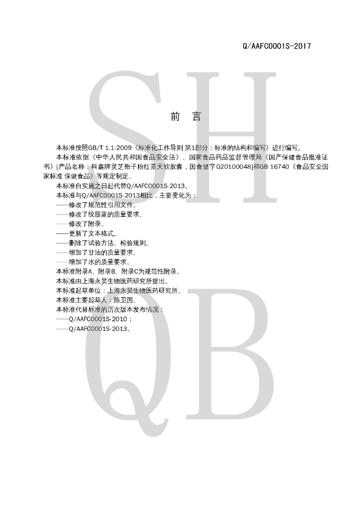 Q/AAFC 0001S-2017 科鑫牌灵芝孢子粉红景天软胶囊