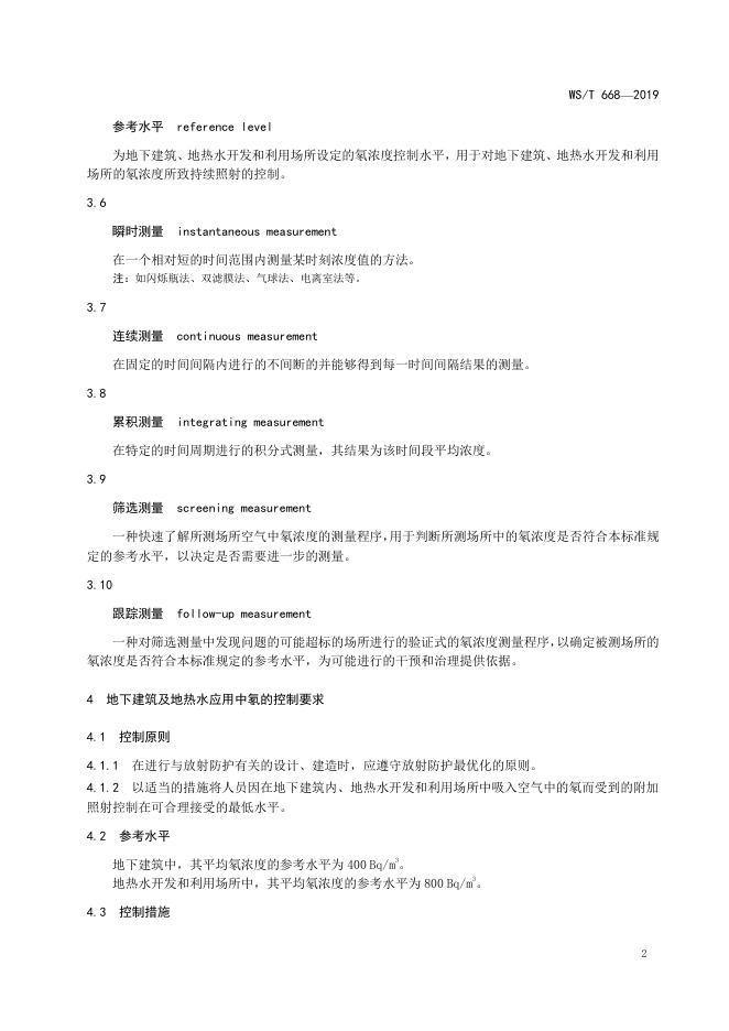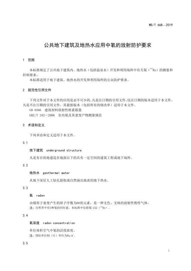 WS/T 668-2019 公共地下建筑及地热水应用中氡的放射防护要求