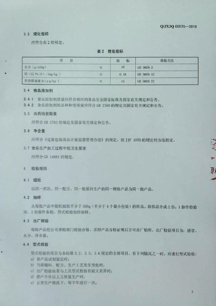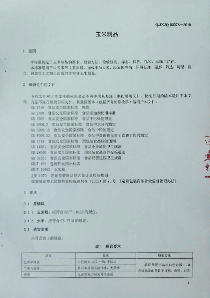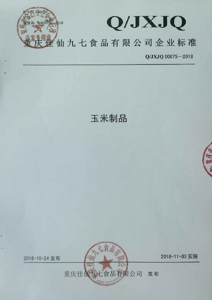 Q/JXJQ 0007S-2018 玉米制品