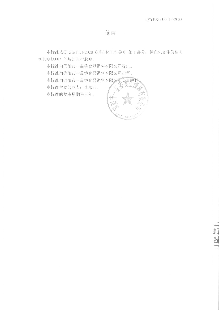 Q/YPXG 0001S-2022 山胡椒调味油
