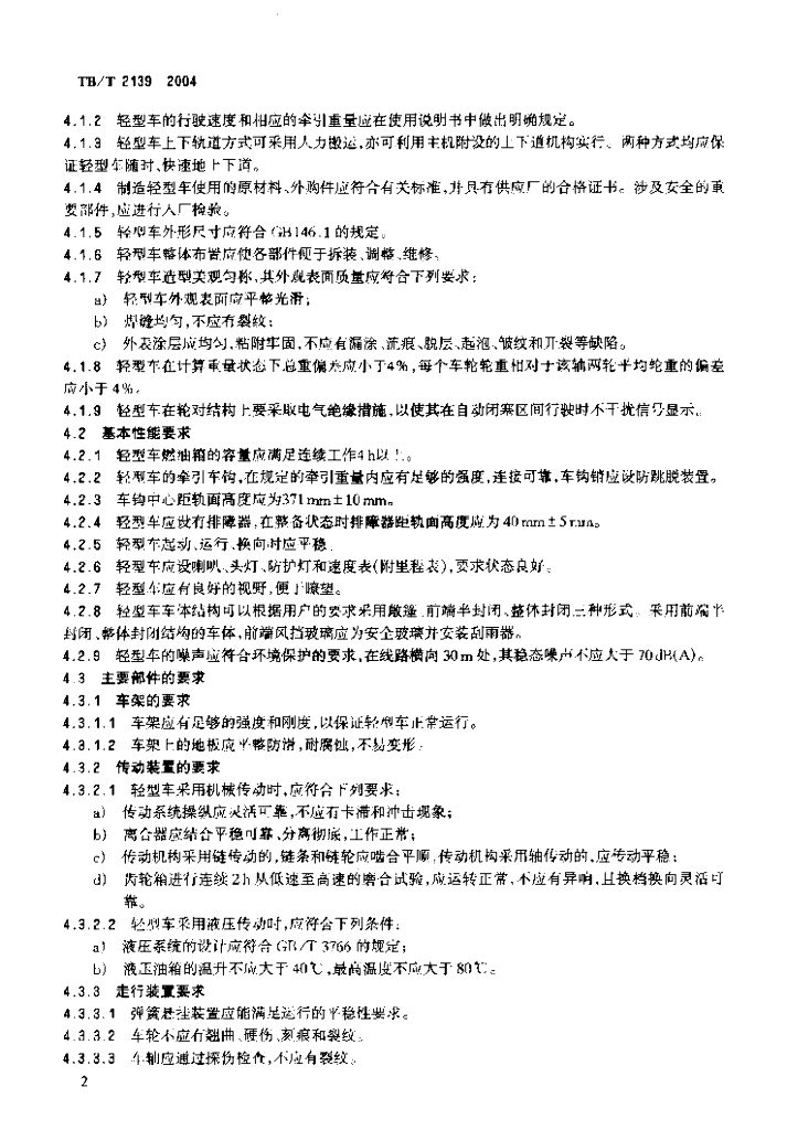 TB/T 2139-2004 轻型轨道车技术条件