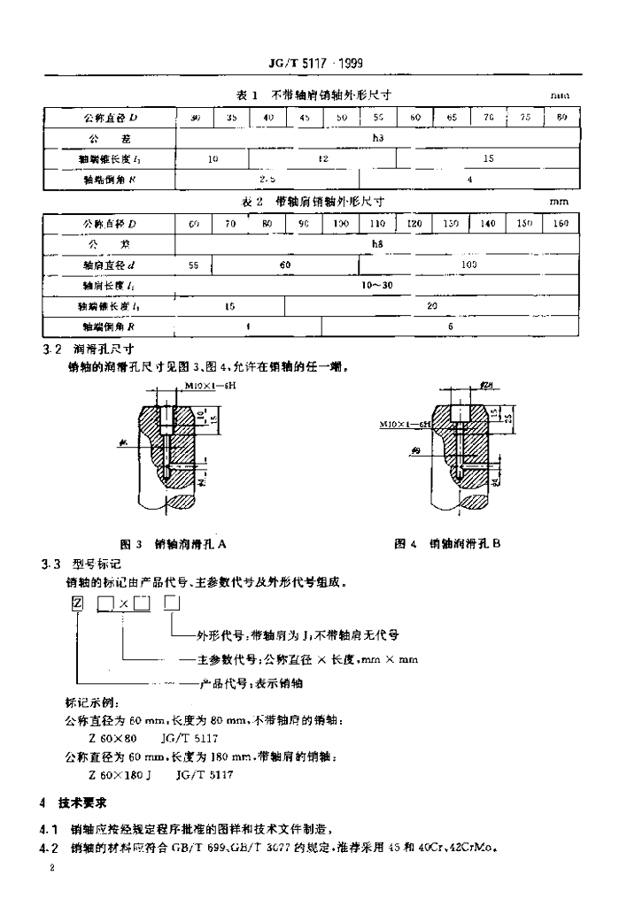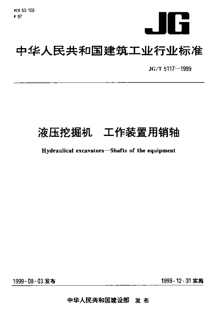 JG/T 5117-1999 液压挖掘机 工作装置用销轴