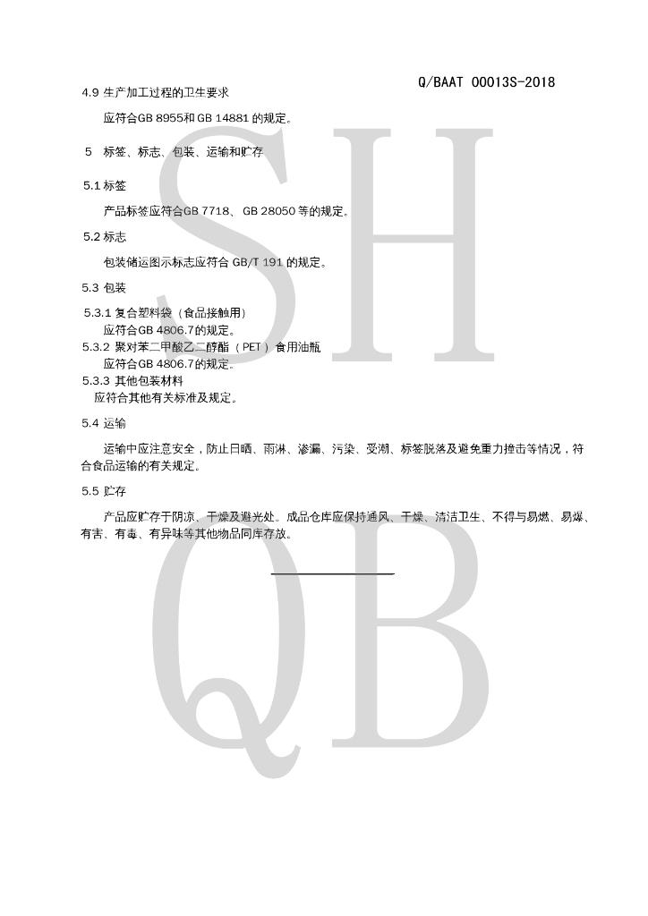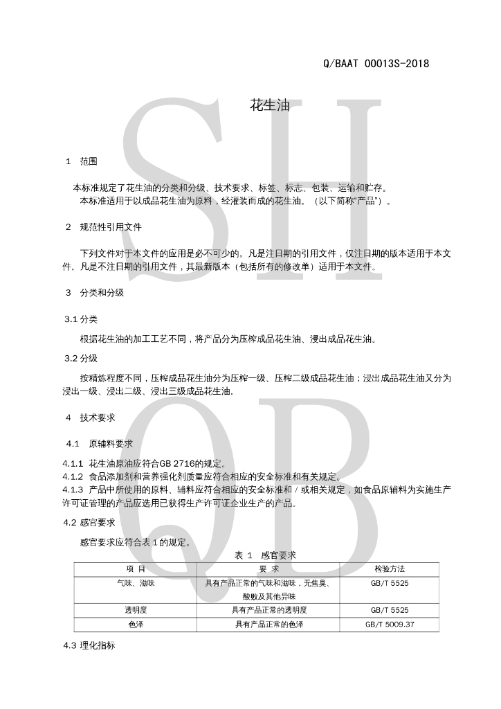 Q/BAAT 00013S-2018 花生油