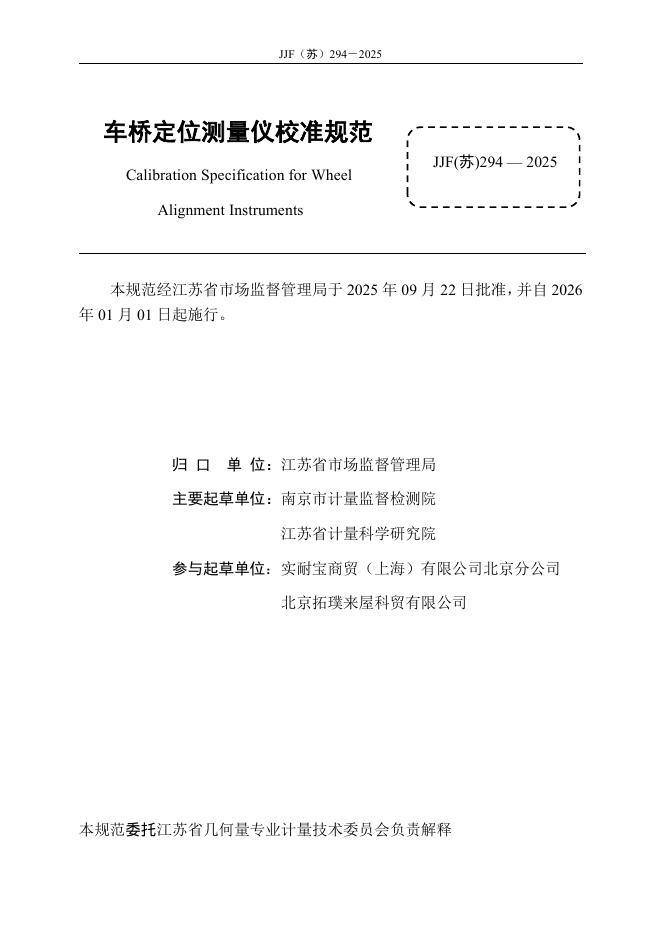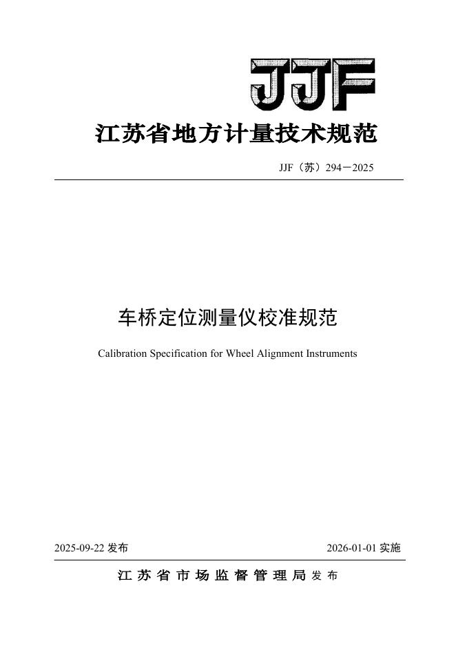 JJF(苏)294-2025 车桥定位测量仪校准规范