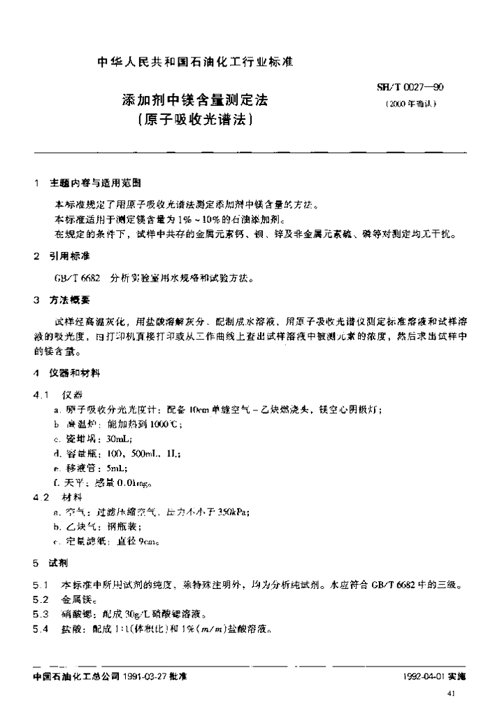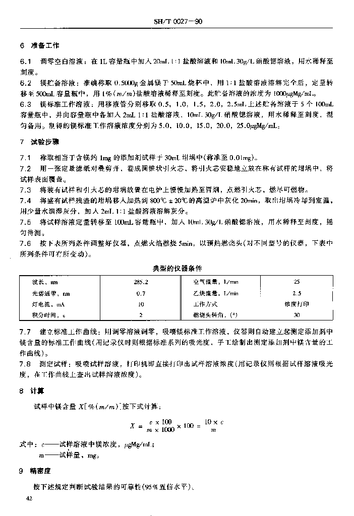 SH/T 0027-1990 添加剂中镁含量测定法(原子吸收光谱法)