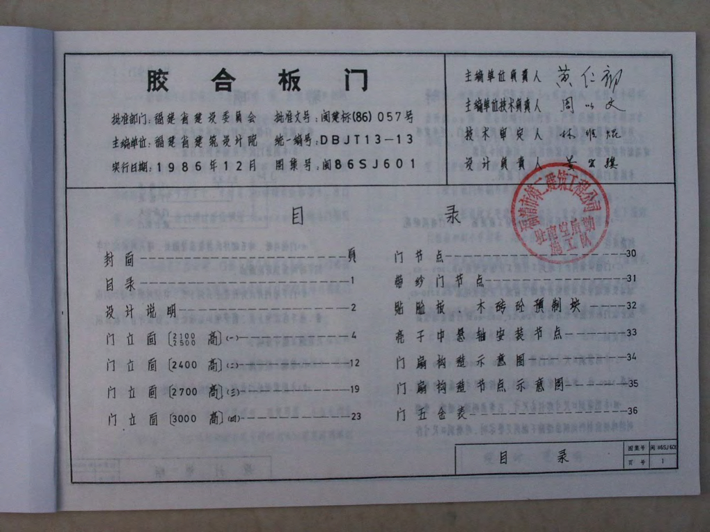 闽86SJ601 胶合板门图集