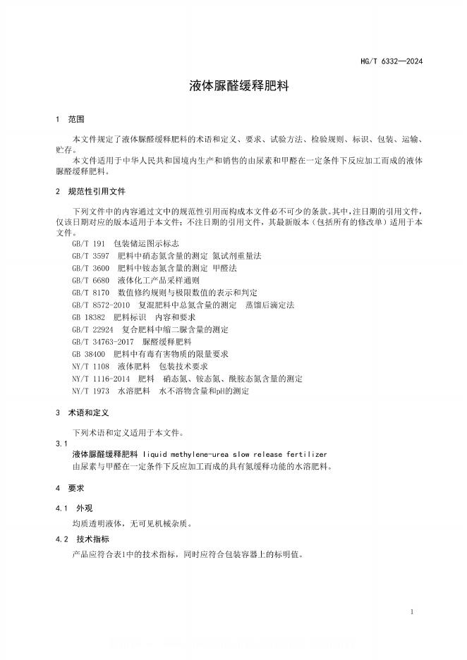 HG/T 6332-2024 液体脲醛缓释肥料