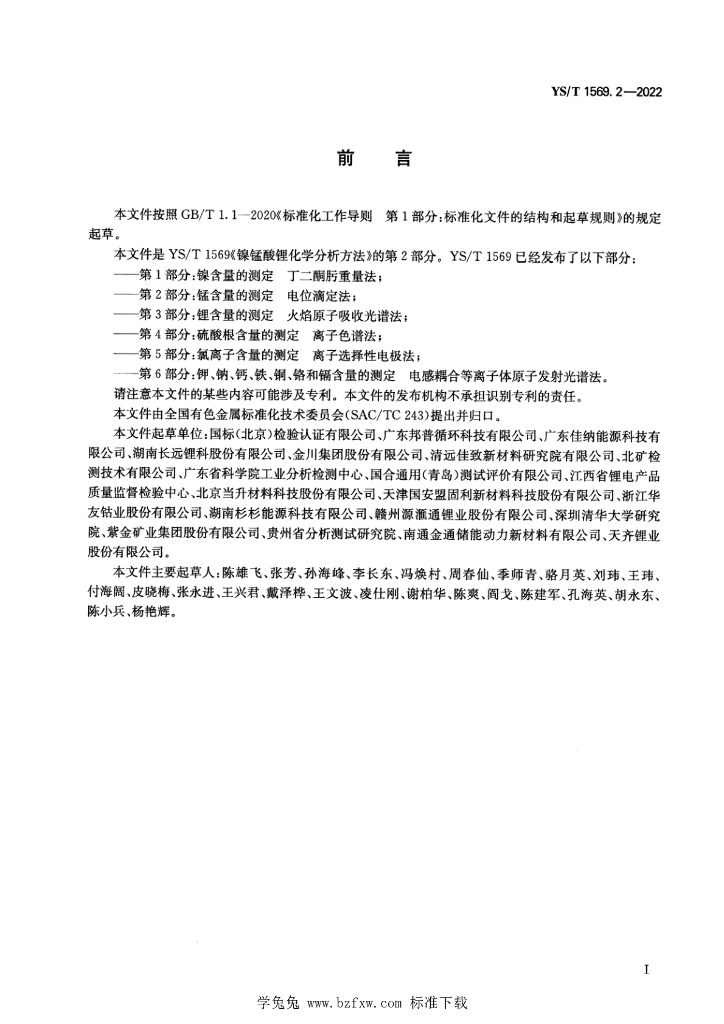 国标(北京)检验认证有限公司、广东邦普循环科技有限公司、广东佳纳能源科技有限公司、湖南长远锂科股份有限公司、金川集团股份有限公司、清远佳致新材料研究院有限公司、北矿检测技术有限公司、广东省科学院工业分析检测中心、国合通用(青岛)测试评价有限公司、江西省锂电产品质量监督检验中心、北京当升材料科技股份有限公司、天津国安盟固利新材料科技股份有限公司、浙江华友钴业股份有限公司、湖南杉杉能源科技有限公司、赣州源滙通锂业股份有限公司、深圳清华大学研究院、紫金矿业集团股份有限公司、贵州省分析测试研究院、南通金通储能动力